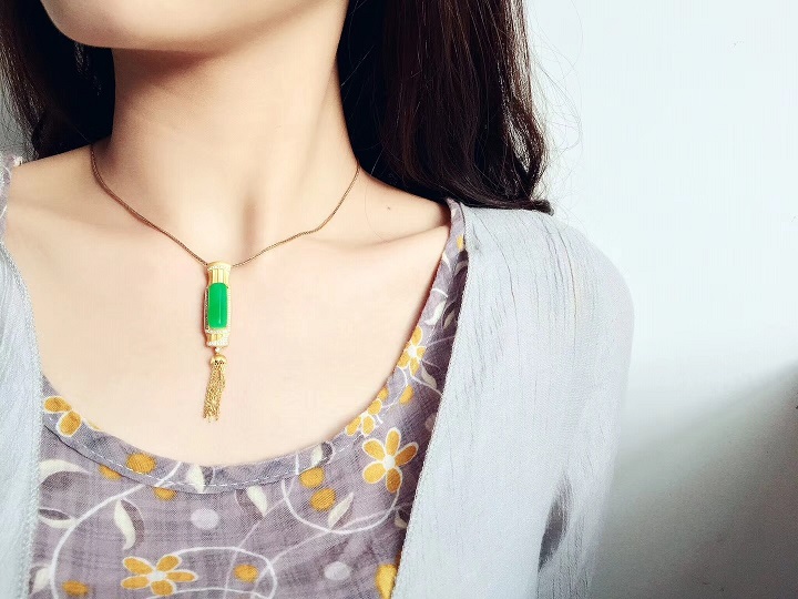 佩戴方式:吊坠 珠宝材质:冰种满绿色翡翠 钻石VS级别 18K金