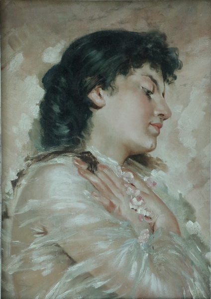 欧洲古典油画 《梦幻中的少女》33.5cm×25cm 1900 年左右